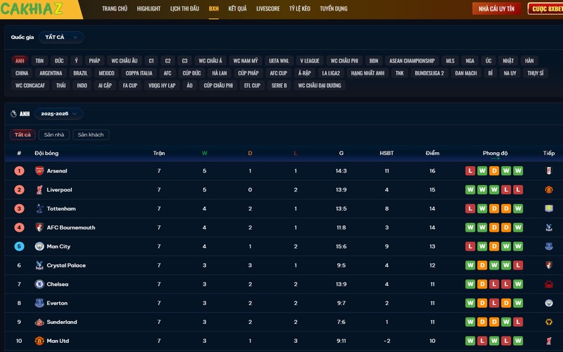 Cakhia TV đã và đang trở thành “người bạn đồng hành” không thể thiếu của fan bóng đá Anh. Chỉ cần vài cú nhấp chuột, bạn đã có thể cập nhật bảng xếp hạng mới nhất với đầy đủ điểm số, vị trí và hiệu số bàn thắng của từng đội bóng.