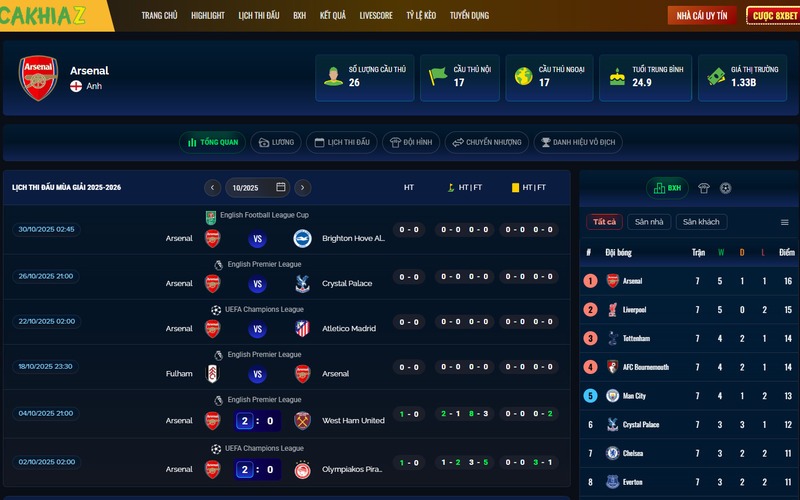 Cakhia TV – Website cập nhật bảng xếp hạng hàng đầu hiện nay