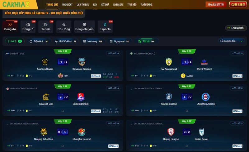 Xem trưc tiep bong da chuẩn full hd trên kênh Cakhia Live